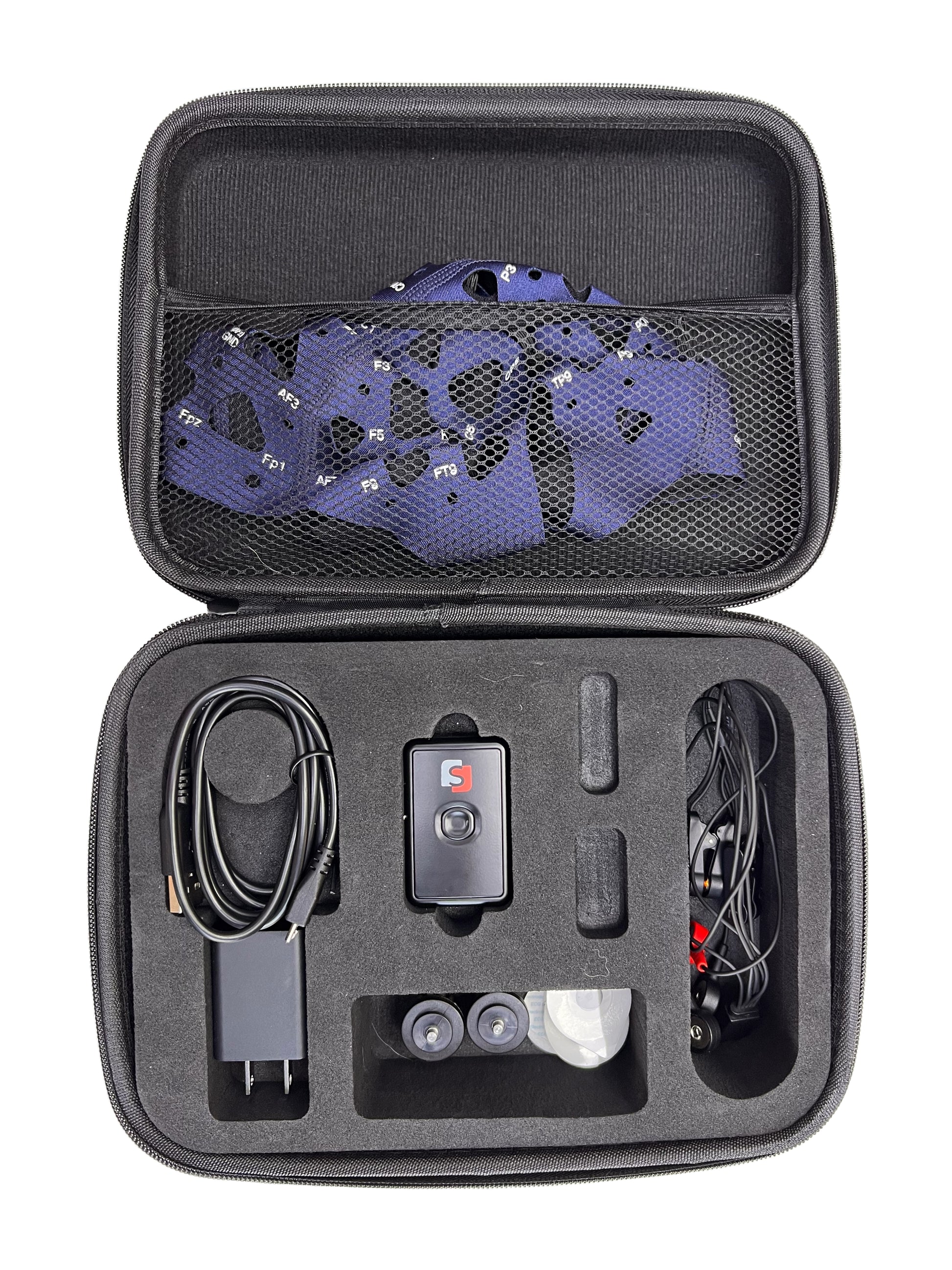 Synchroni Trio, your ultimate neurofeedback solution. Engineered for seamless operation without sacrificing data integrity, this cutting-edge device features 2-channel EEG and 1-channel ECG capabilities. Experience streamlined data collection through the device's intuitive design and Synchroni’s user friendly electrodes. Equipped with real-time impedance monitoring and hi-fidelity signal technology, the Synchroni Trio guarantees precise and accurate data collection with every use. Our comprehensive SDK offers support across various platforms, ensuring uncomplicated software development for all your applications. Additionally, the Trio also comes with different electrode configurations to better suit your application needs.